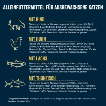 Den Katzenfutter-Mix gibt es in den folgenden Sorten
