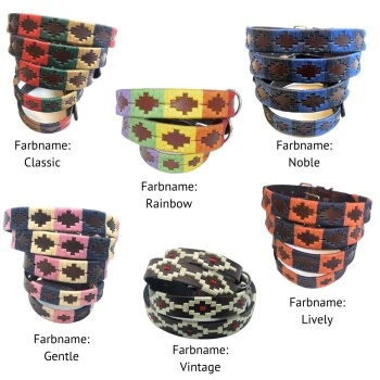 Die Längen sind durch Löcher in den Halsbändern verstellbar.