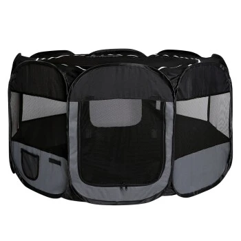 Durch das Pop-up-System erfolgt der Aufbau kinderleicht, der faltbare Hundelaufstall ist zusammenklappbar und wird mit einer praktischen Tragetasche geliefert.